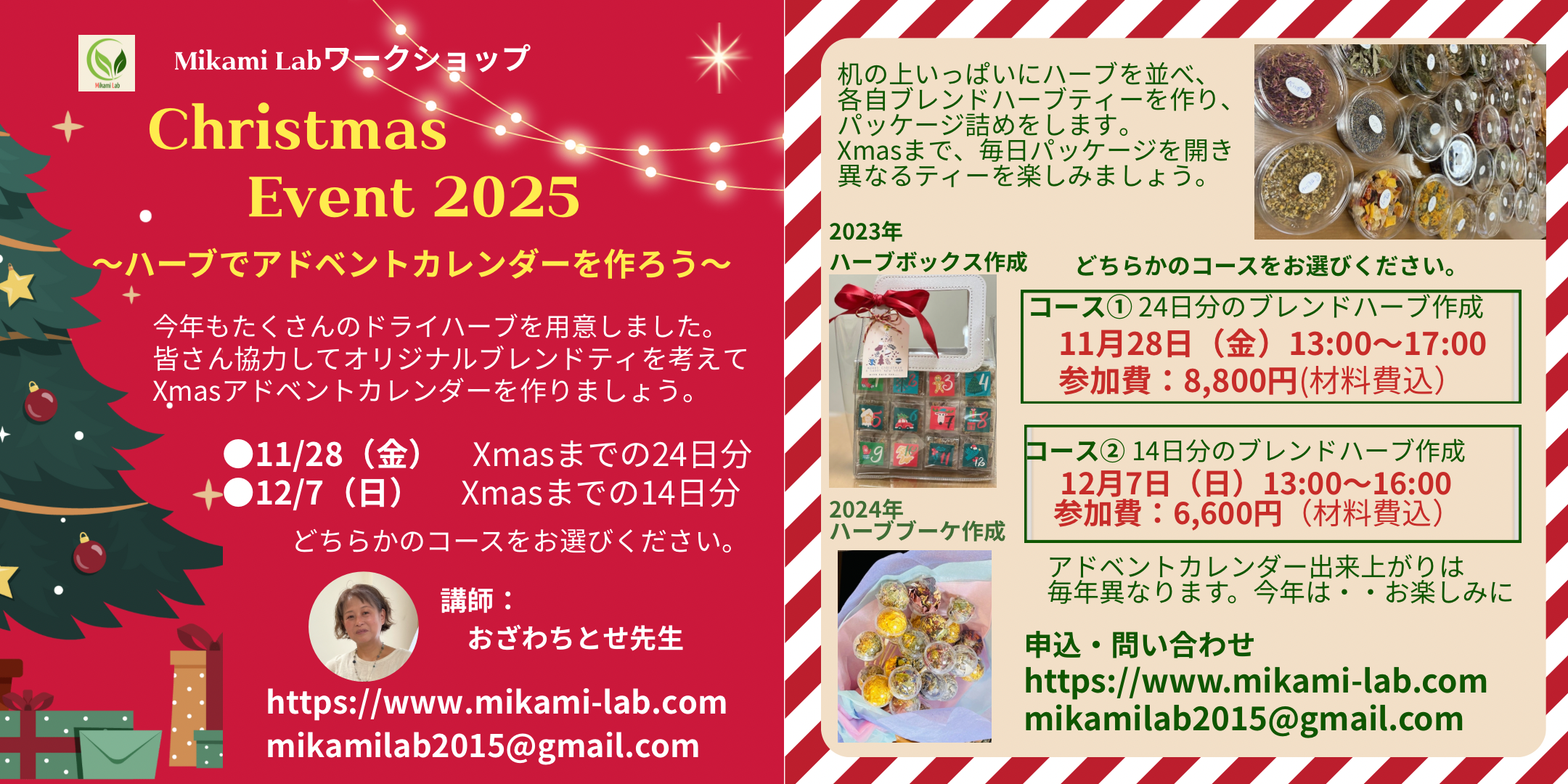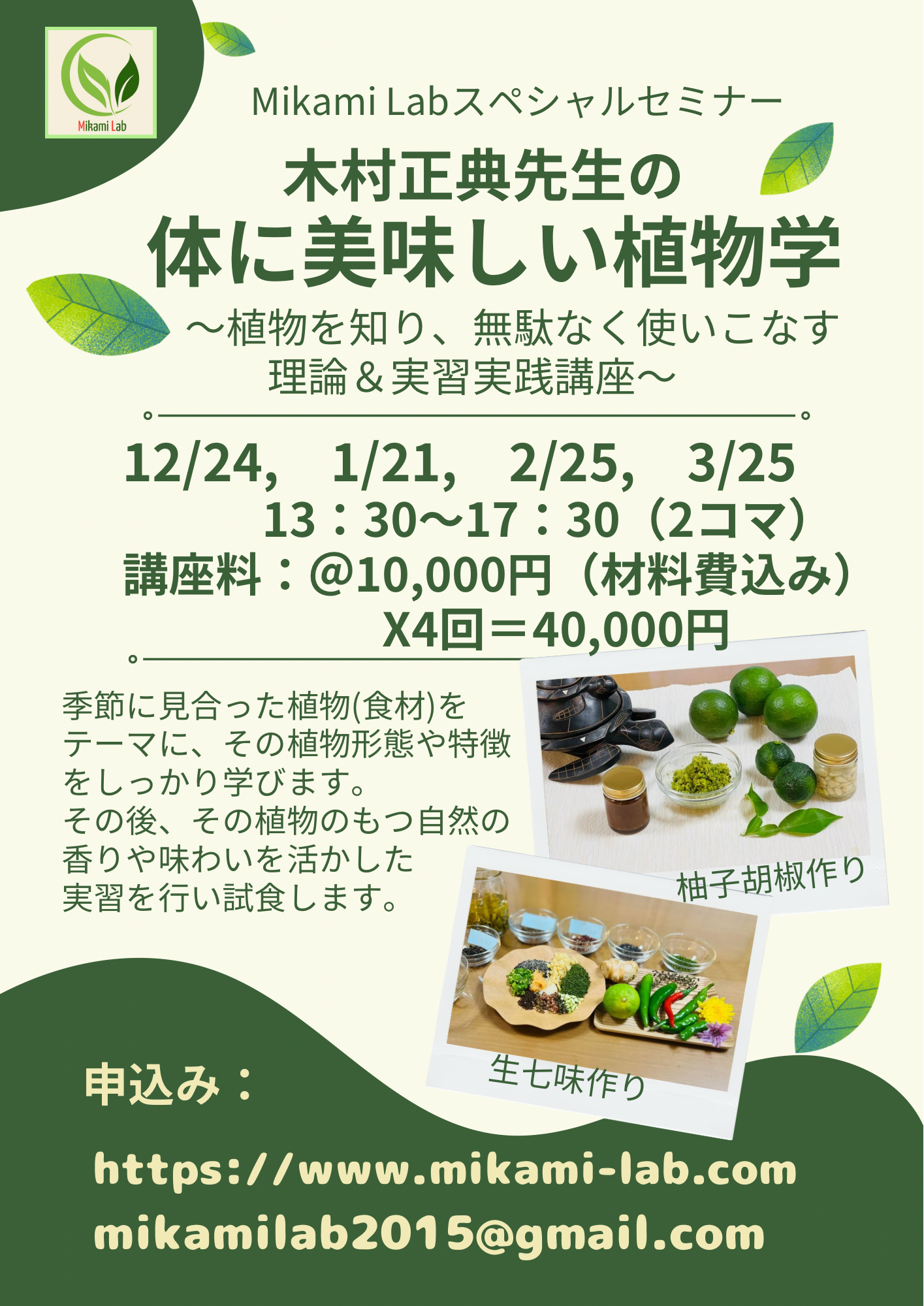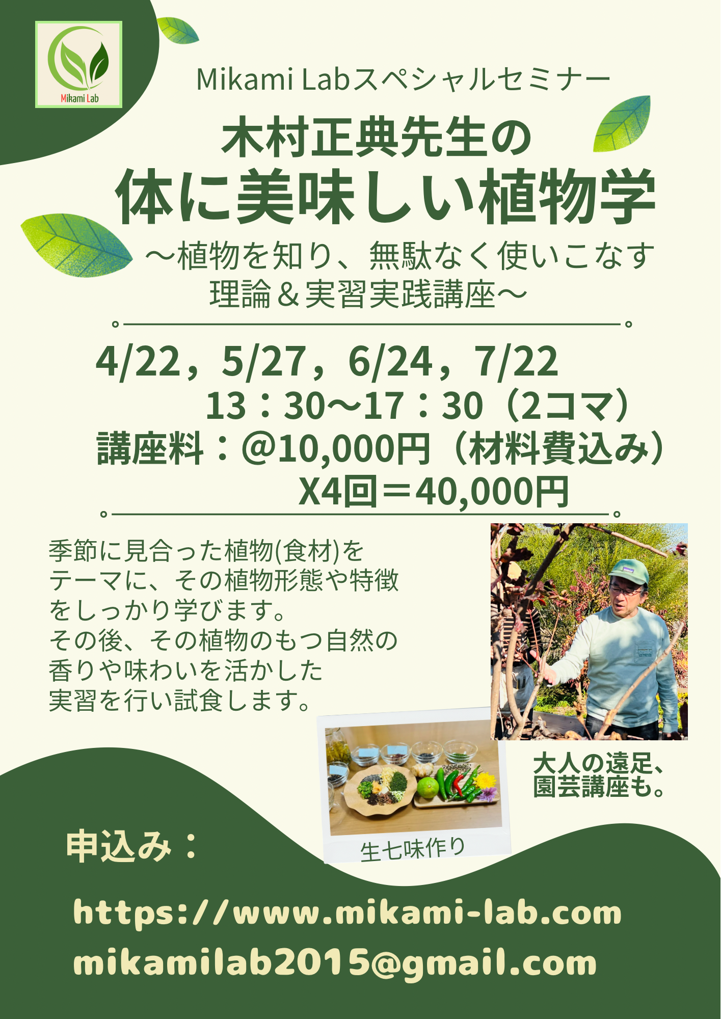 Mikami Labでは、心や身体の不調の改善、健康維持にさまざまな植物を活用する植物療法を学び、日々の暮らしを楽しく豊かにするライフスタイルを提案します。